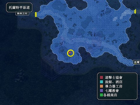 在托蘭特平原道會找到拋錨的運輸車,應該是導力引擎故障了,此時會引來一大批的魔獸裝甲兔,裝甲兔魔法防禦很差,所以用魔法攻擊即能輕鬆解決。之後就會出現延伸任務「修理運輸車」。 ![]() 運輸車所在位置 |