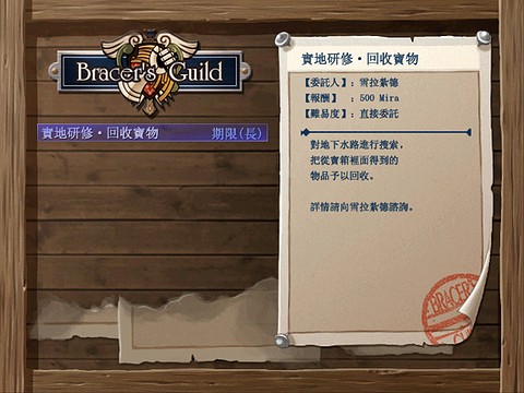 ※完成任務後,向遊擊士協會報告才能取得報酬與BP(遊擊士點數),才算是真正的完成委託,向哪一個支部報告都行。